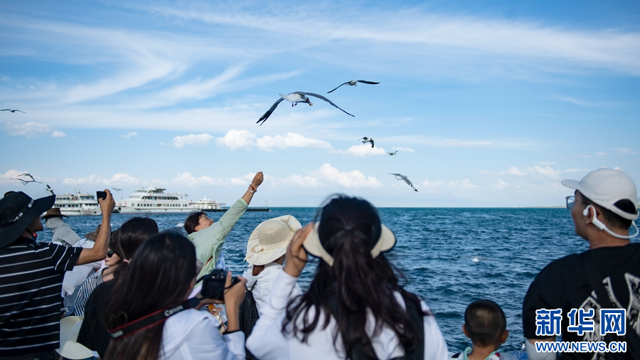 天空湛藍(lán)、湖水澄澈……夏日的青海湖風(fēng)光迷人,游客們在藍(lán)天碧水之間親近大自然。近年來,青海湖生態(tài)環(huán)境質(zhì)量顯著改善。同時(shí),當(dāng)?shù)卮蛟炀仿糜温肪€、規(guī)范旅游秩序,一幅人與生態(tài)和諧共生的畫卷徐徐鋪展,吸引大量游客旅游觀光。