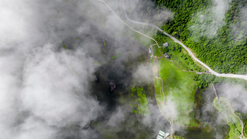 航拍鏡頭下云霧繚繞的群山(7月29日攝)。新華網(wǎng) 趙普凡 攝