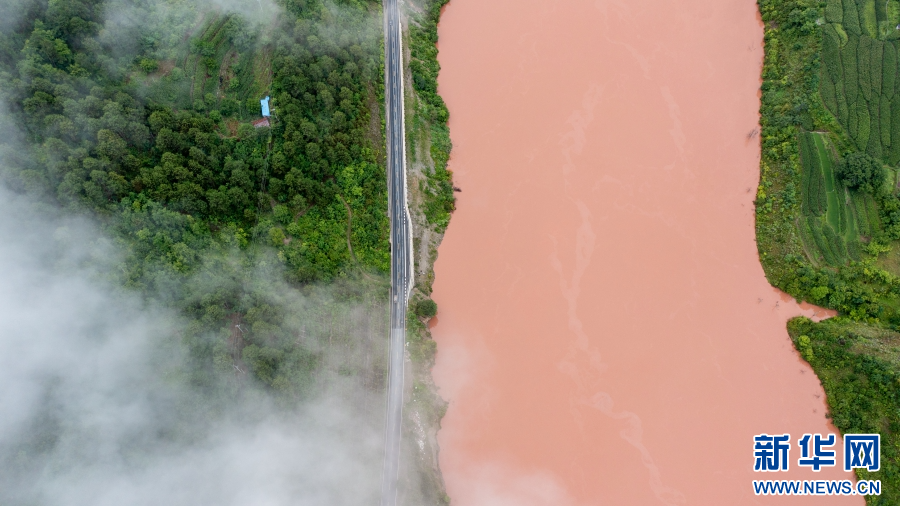 航拍鏡頭下的沿江公路(7月29日攝)。新華網(wǎng) 趙普凡 攝