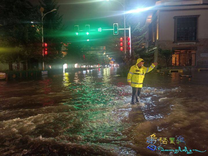 8月6日,受強(qiáng)降雨影響,香格里拉市城區(qū)部分路段出現(xiàn)不同程度的內(nèi)澇和雨水倒灌現(xiàn)象。香格里拉市城區(qū)陽(yáng)塘路、壇城北路、池慈卡街等道路嚴(yán)重積水,出行受阻,隱患增多。為保障群眾安全出行,香格里拉市公安局直屬城市交警大隊(duì)第一時(shí)間啟動(dòng)防汛應(yīng)急預(yù)案,全力開(kāi)展交通疏導(dǎo)、隱患排查,通宵達(dá)旦排水排澇、搶險(xiǎn)清障、救助群眾,扛起保障道路安全暢通的重?fù)?dān),為市民雨夜出行撐起“安全傘”。