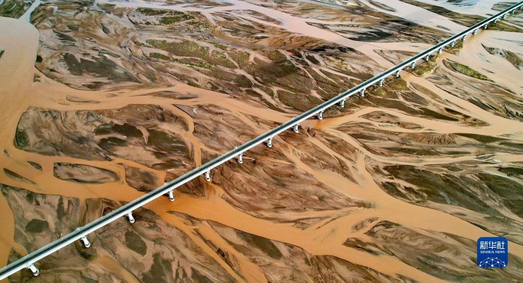 青藏鐵路通過(guò)辮狀河道的沱沱河(7月26日攝,無(wú)人機(jī)照片)。新華社記者 劉詩(shī)平 攝