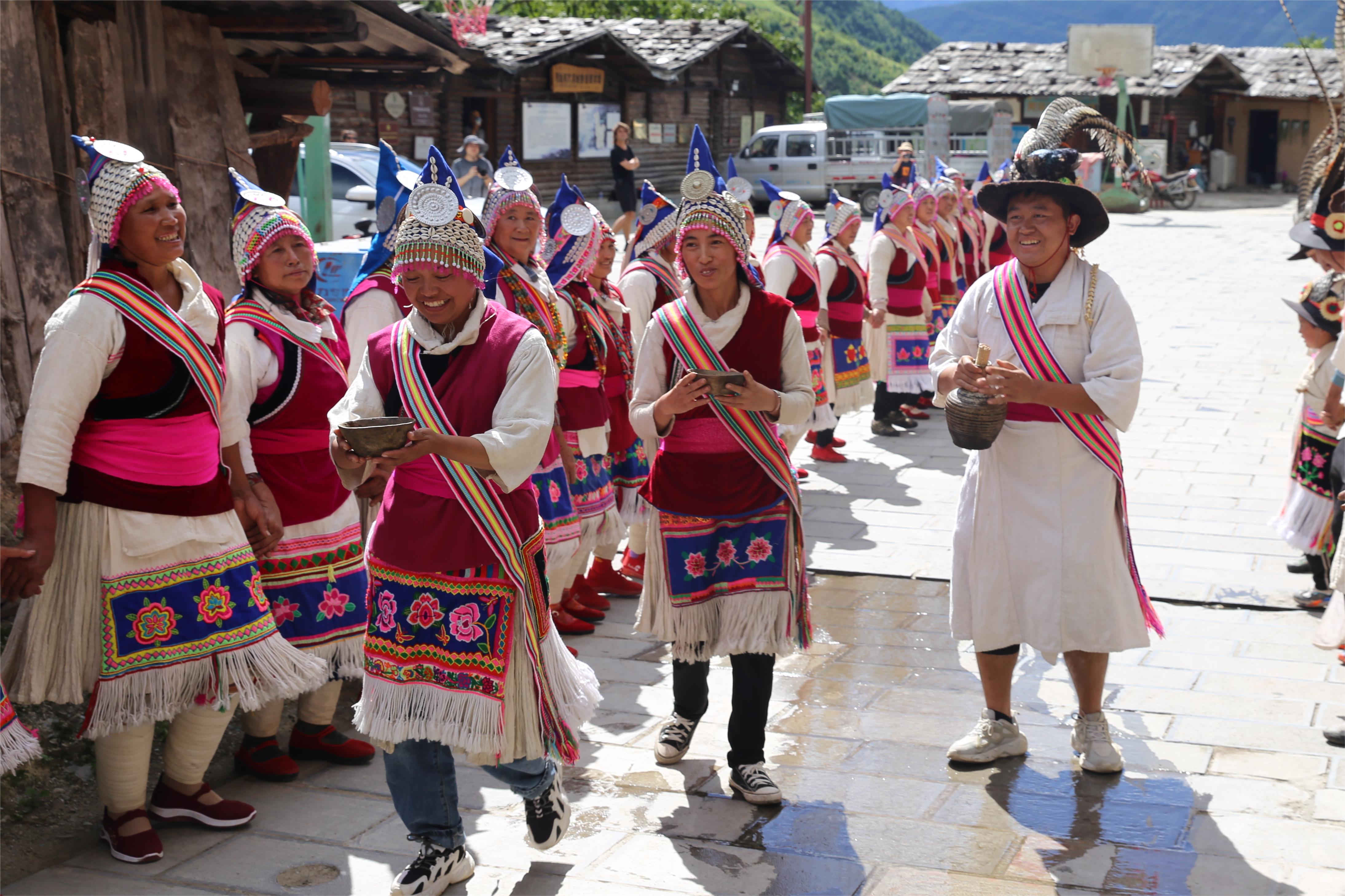維西縣葉枝鎮(zhèn)同樂村村民身著盛裝歌舞阿尺目刮