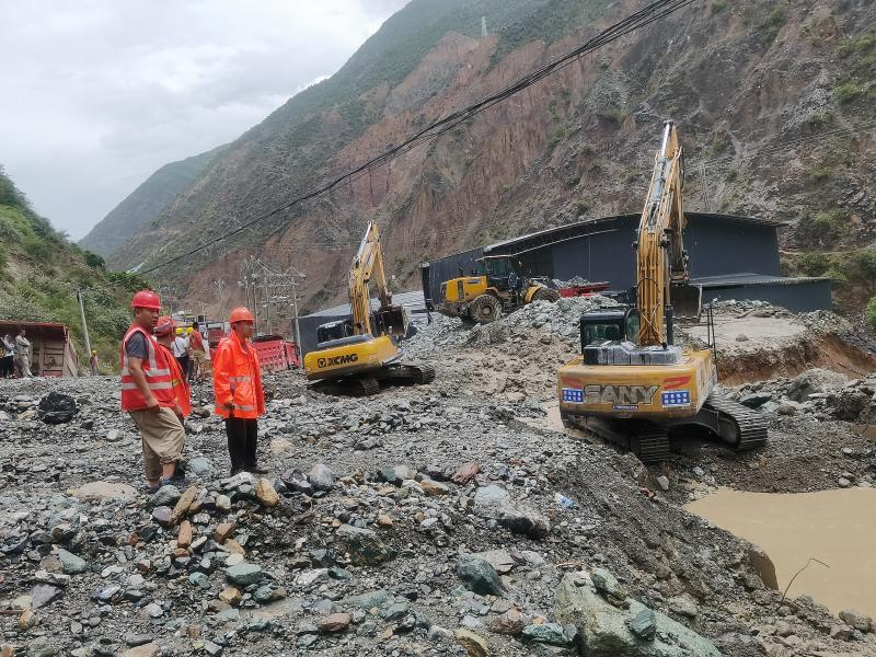 近日,受持續(xù)強降雨影響,G214線佛山鄉(xiāng)古水村附近K1911+750處發(fā)生泥石流災(zāi)害,造成交通中斷。德欽公路分局立即啟動汛期保通應(yīng)急預(yù)案,第一時間組織應(yīng)急搶險人員趕赴現(xiàn)場,4臺裝載機、2臺挖掘機、4臺運輸車全力投入搶通工作中,并協(xié)同交警實行交通管制,疏散滯留車輛。經(jīng)過多部門搶險保通作業(yè),受阻路段順利實現(xiàn)半幅通行。圖為現(xiàn)場正在清理鏟運泥沙。