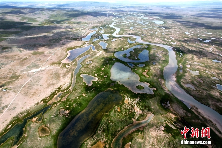 8月24日,航拍青海省果洛藏族自治州瑪多縣星星海風光?,敹嗫h地處三江源國家級自然保護區(qū)核心腹地,素有“黃河源頭第一縣”“千湖之縣”美譽。星星海由大大小小的湖泊、水泊組成,從空中俯瞰無數(shù)湖泊宛如繁星。(無人機照片)中新社發(fā) 薛蒂 攝