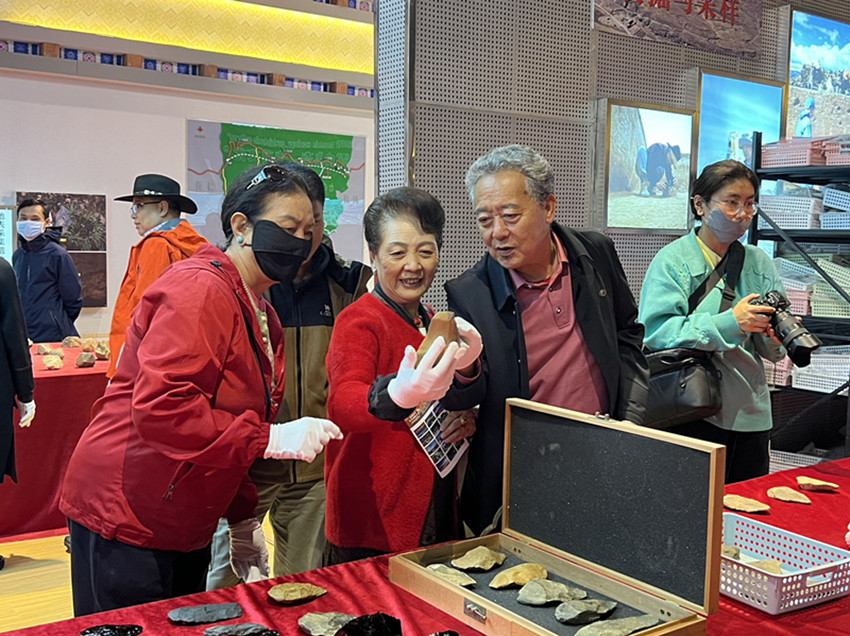 來自省內(nèi)外學(xué)術(shù)界和演藝界的甘孜名人戴上手套近距離觸摸石器物品所傳達的歷史溫度。