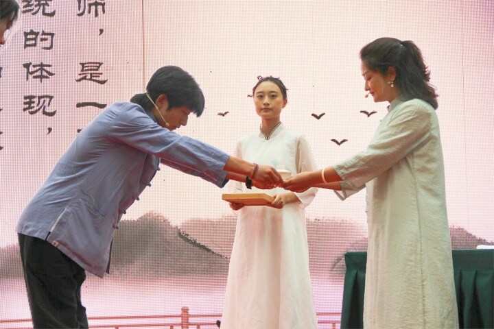隨后,教師和同學(xué)們集體宣讀誓言,慷慨洪亮的聲音在宣告他們有信心做好一名稱職的人民教師、優(yōu)秀的學(xué)生。學(xué)生代表的發(fā)言充滿朝氣與活力,胸懷理想與信念,展現(xiàn)出同學(xué)們磨礪自我、奮斗青春的信心與抱負(fù)。教師代表的發(fā)言如良師益友娓娓道來,用榜樣的力量和長者的親切,為同學(xué)們指點(diǎn)迷津、加油鼓勁,激勵(lì)同學(xué)們胸懷遠(yuǎn)志、堅(jiān)毅卓絕、奮發(fā)進(jìn)取、只爭朝夕!隨后,同學(xué)們在主持人的指引下肅整衣冠、向老師鞠躬行禮,寓意此后正式踏入學(xué)門,明志于四方。