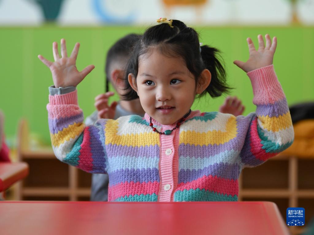 9月4日,青海省果洛藏族自治州阿尼瑪卿幼兒園小朋友在學(xué)習(xí)手指操。新華社記者 張龍 攝