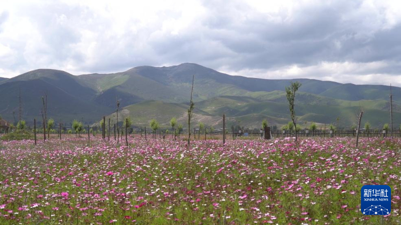 難以置信的是,這里曾是一片沙化嚴(yán)重的草場(chǎng),當(dāng)?shù)卮迕窨總鹘y(tǒng)放牧已難以為繼。2016年以來,當(dāng)?shù)卣脤?shí)施生態(tài)治理工程的契機(jī),整合涉農(nóng)涉旅資金,大面積種植格桑花,打造出近1600畝的色拉花海。