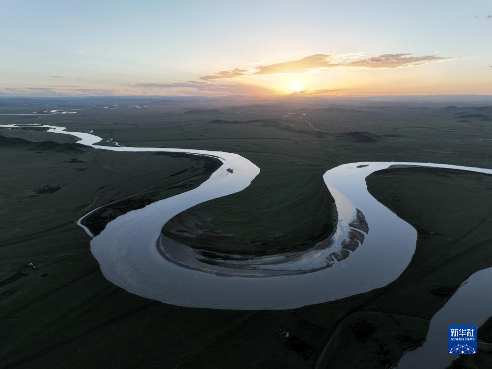 這是8月21日在四川省阿壩藏族羌族自治州若爾蓋縣唐克鎮(zhèn)拍攝的黃河九曲第一灣落日(無(wú)人機(jī)照片)。新華社記者 邢廣利 攝
