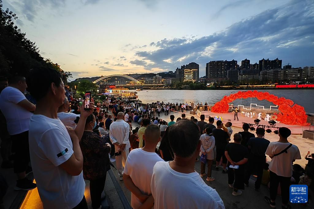 7月19日,在蘭州市城關(guān)區(qū),游客在黃河岸邊欣賞黃河之濱百日千場音樂展演活動(dòng)。新華社記者 范培珅 攝