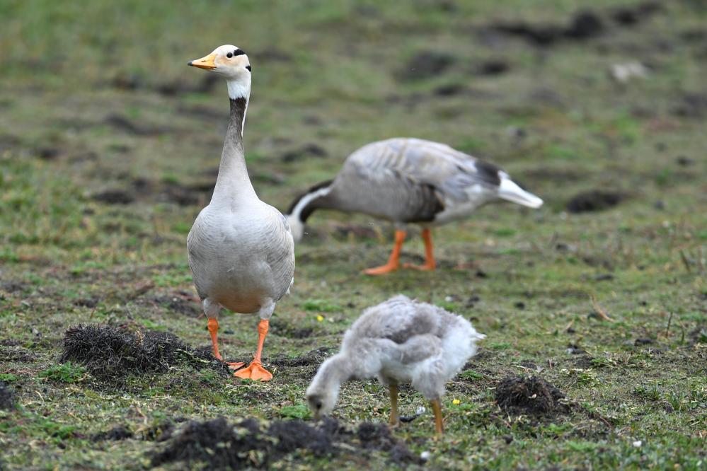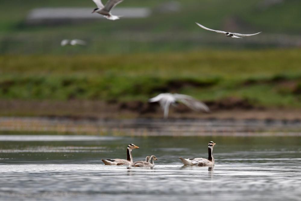 這是在甘肅尕海則岔國家級(jí)自然保護(hù)區(qū)的尕海濕地上拍攝的斑頭雁。 新華社記者 張可任 攝