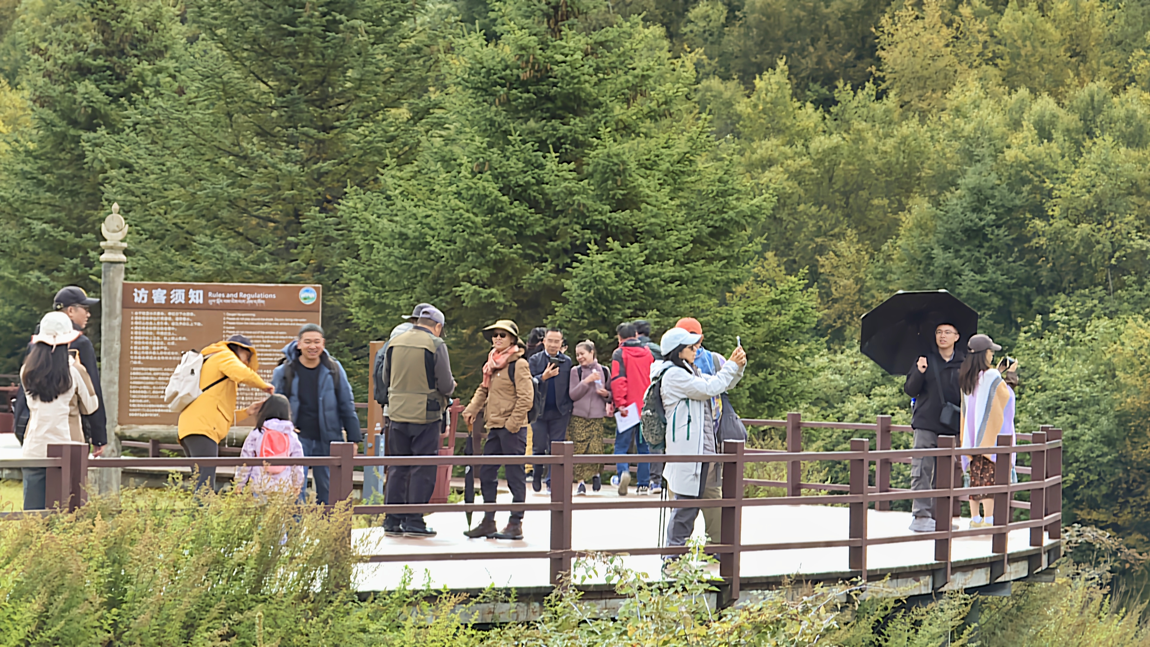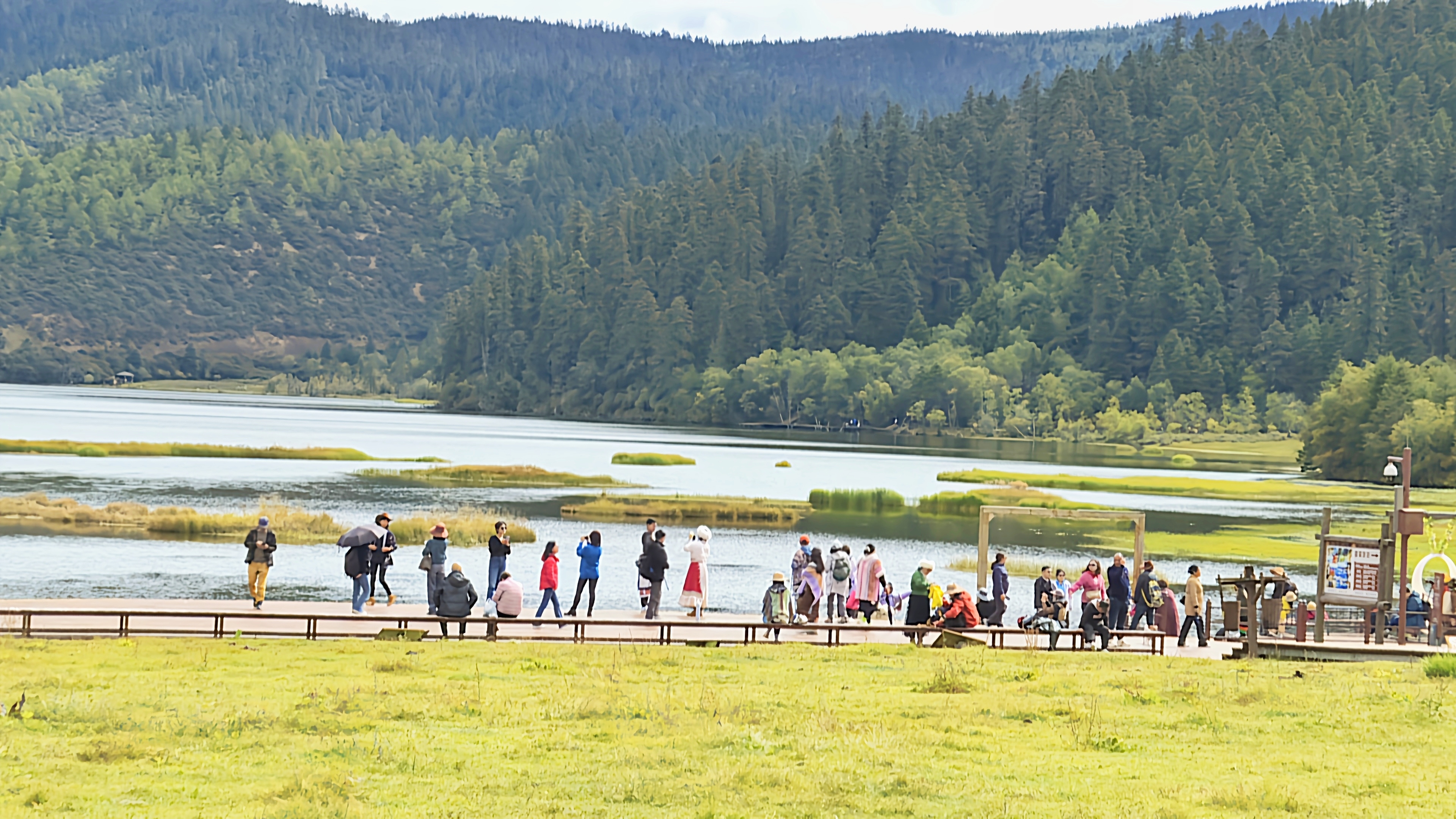 秋日的普達(dá)措國家公園層林盡染、色彩斑斕,高山草甸、原始森林與湖泊濕地構(gòu)成了一幅幅美麗的畫卷,屬都湖棧道上人群熙熙攘攘。“我是第一次來香格里拉旅游,香格里拉給我的感覺就是,這里的生態(tài)環(huán)境保護(hù)得很好,綠水青山,很值得來游玩?!庇慰退闻勘硎尽?/p>