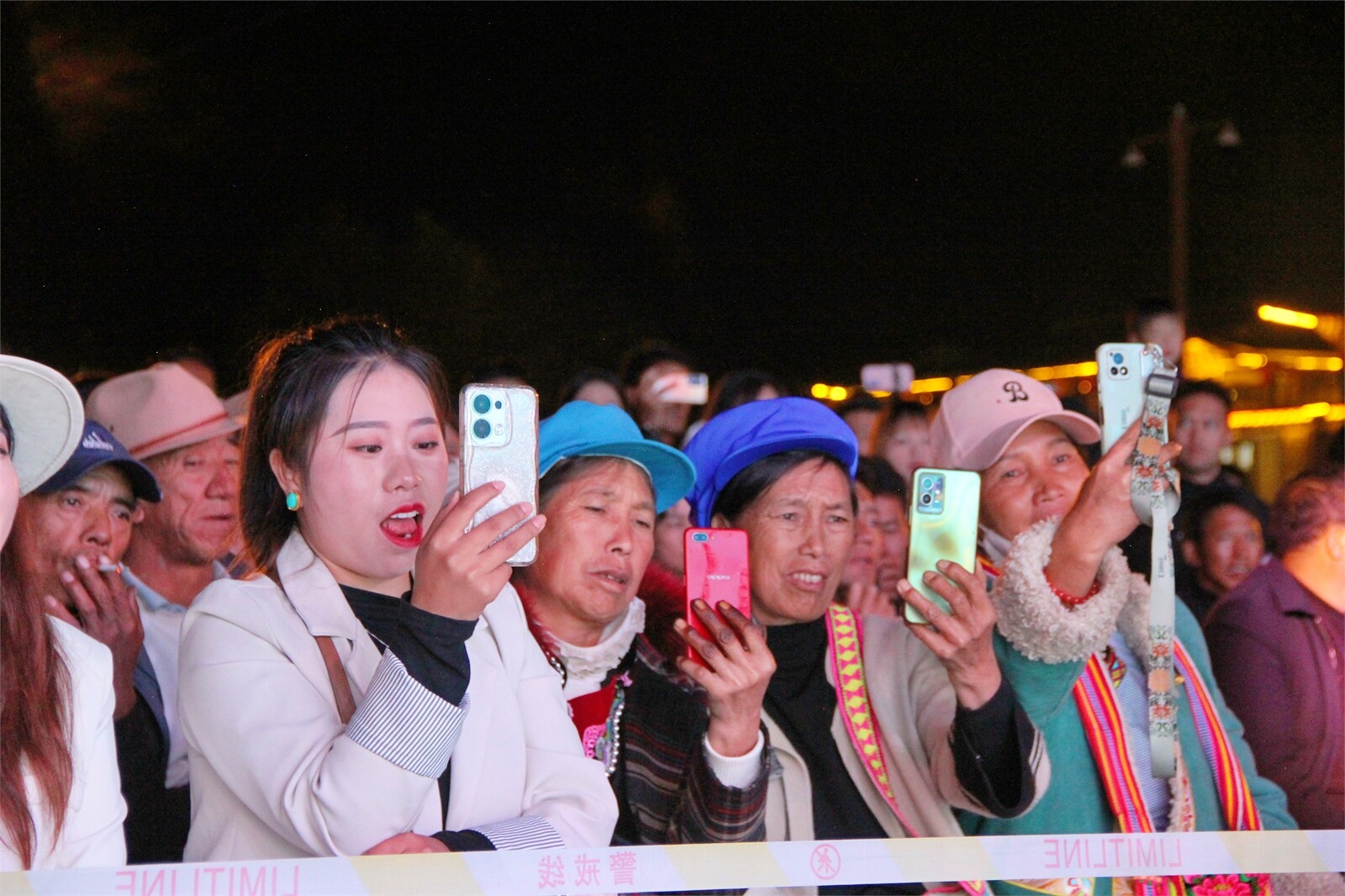 《去往香格里拉》《梅里雪山的女兒》《南姐洛》……來自三縣(市)的優(yōu)秀青年歌手們?yōu)楝F(xiàn)場觀眾帶來悠揚(yáng)動(dòng)人的原創(chuàng)歌曲,歌聲飄揚(yáng)在獨(dú)克宗古城夜空,吸引了眾多游客駐足聆聽?,F(xiàn)場觀眾伴著音樂,揮舞點(diǎn)亮的手機(jī)互動(dòng),感受別樣的香格里拉聲音。