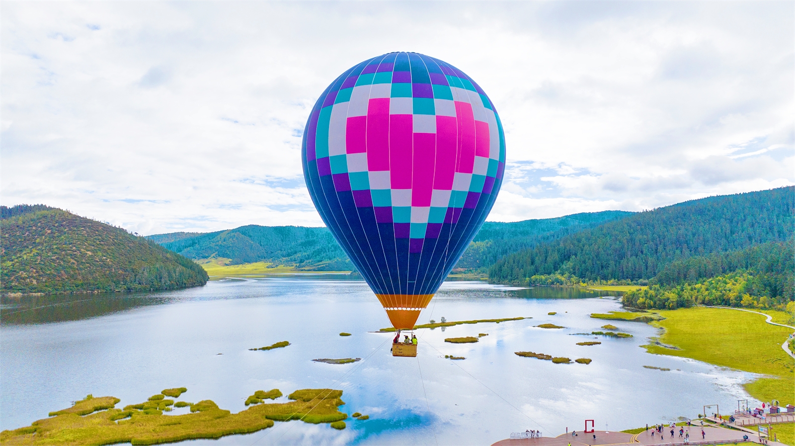 國慶假期期間,香格里拉普達(dá)措國家公園新增直升機(jī)和熱氣球低空觀光體驗(yàn)項(xiàng)目,讓游客從高空俯瞰神秘而壯麗的普達(dá)措公園美景。