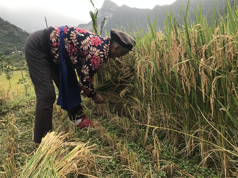 近日,維西縣塔城鎮(zhèn)其宗村村民忙著收割稻谷。