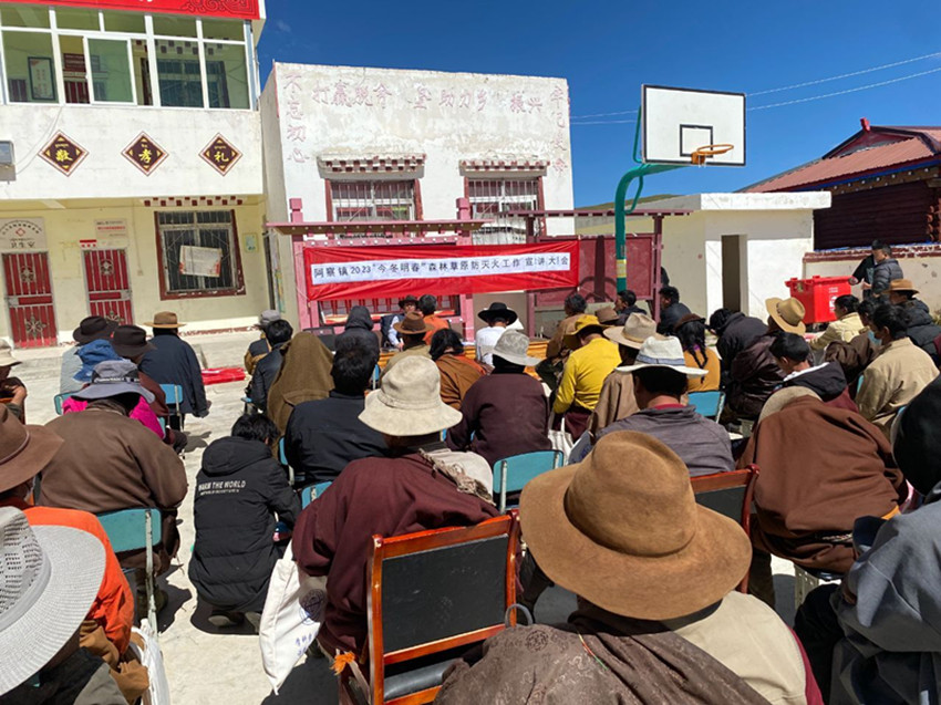 入秋以來,隨著氣溫下降、濕度減弱,森林、草原、濕地的植被含水率降低、干燥易燃,戶外旅游、農(nóng)事用火等野外火源管理難度進一步增大,也讓秋冬季森林草原防火工作壓力陡增?!按蠹乙欢ㄒ涀。M山不要帶火種??吹接谢稹⒂袩燅R上上報……”在白玉縣阿察鎮(zhèn)開展的2023年“今冬明春”森林草原防滅火政策宣講大會上,宣講員用通俗易懂的本土方言向村民們反復(fù)叮囑防火注意事項。連日來,該鎮(zhèn)分別組織人員深入轄區(qū)四個行政村開展宣講大會,宣傳森林草原防滅火政策知識,同時以案示警,通過宣講森林草原火災(zāi)典型事例,向群眾普及違反森林草原防滅火相關(guān)法律法規(guī)的嚴(yán)重后果,著力提升大家的防火安全意識,最大限度地預(yù)防和減少森林火災(zāi)的發(fā)生。