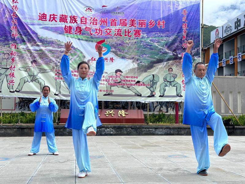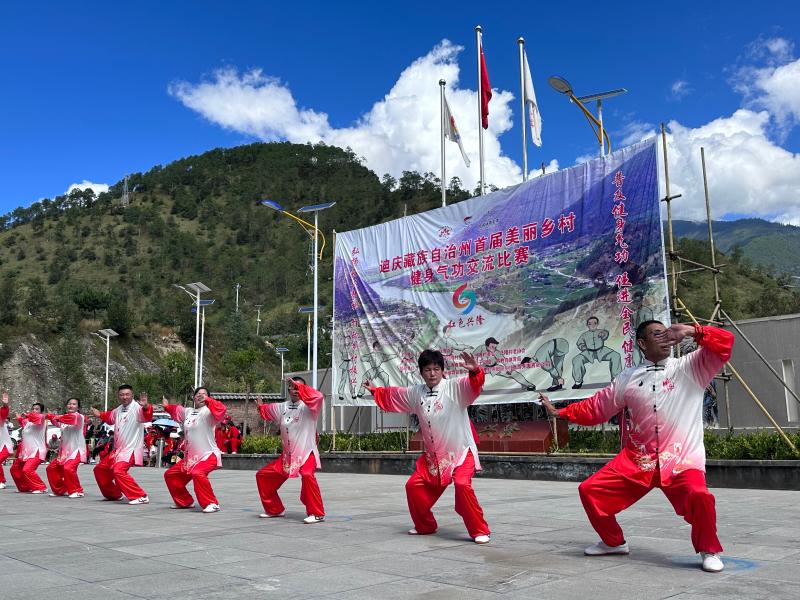 迪慶藏族自治州首屆美麗鄉(xiāng)村健身氣功交流比賽在香格里拉市金江鎮(zhèn)興隆村紅色研學(xué)基地開賽