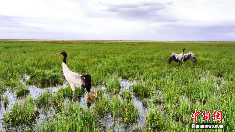 高原黑頸鶴進(jìn)入“育兒季” “一家四口”同框顯溫馨