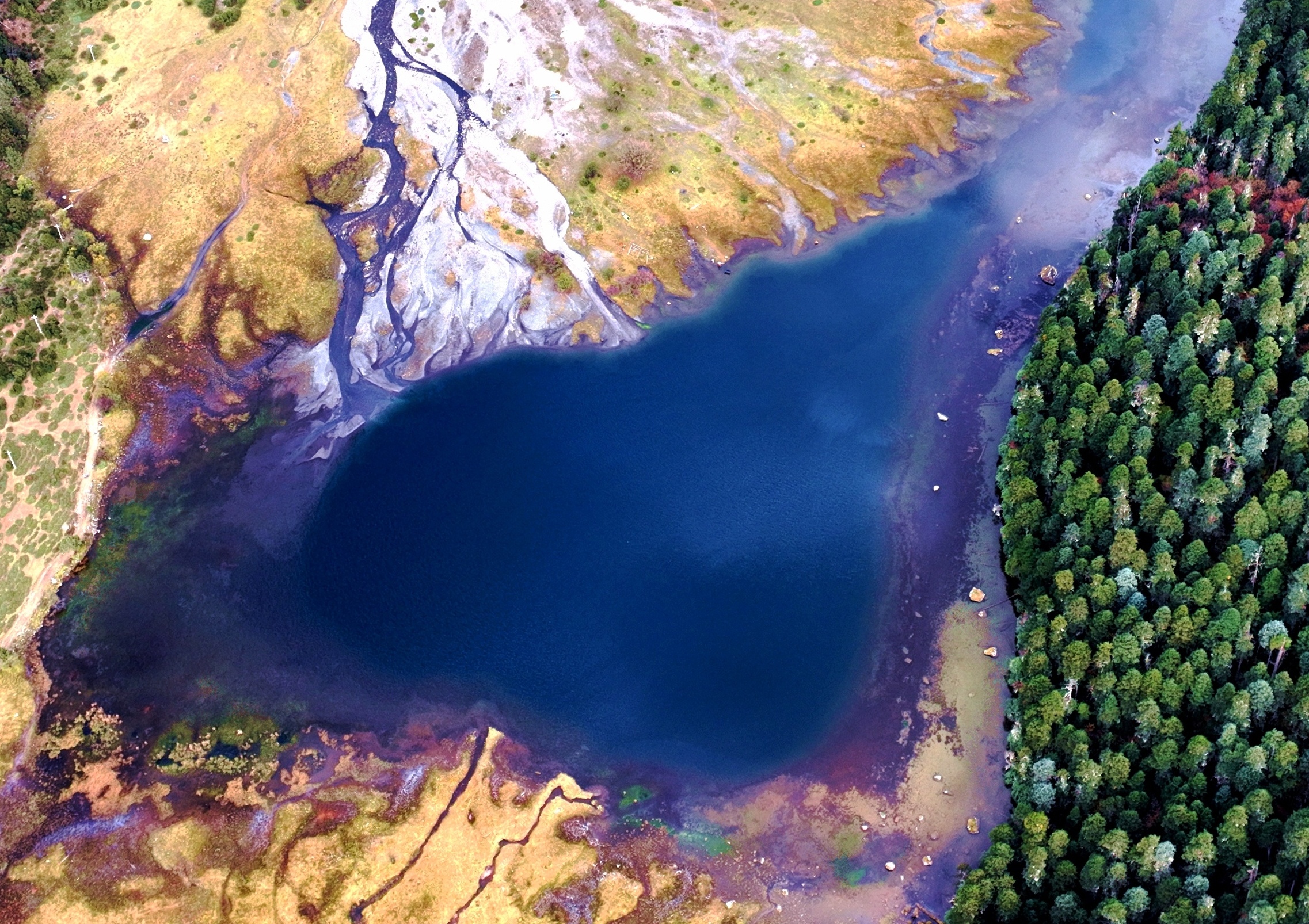 深秋的無底湖疊翠流金,漫山遍野的彩林與彩色的湖水相互輝映,儼然一幅濃墨重彩的美麗油畫,讓人如夢如幻、如癡如醉。