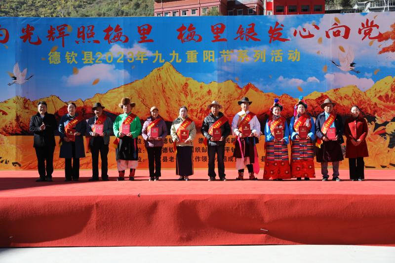 活動(dòng)中,德欽縣縣委、政府負(fù)責(zé)人分別為2023年德欽縣“黨的光輝照梅里 梅里銀發(fā)心向黨”重陽節(jié)系列慶?;顒?dòng)致辭,并通報(bào)了德欽縣2023年經(jīng)濟(jì)社會(huì)發(fā)展情況。