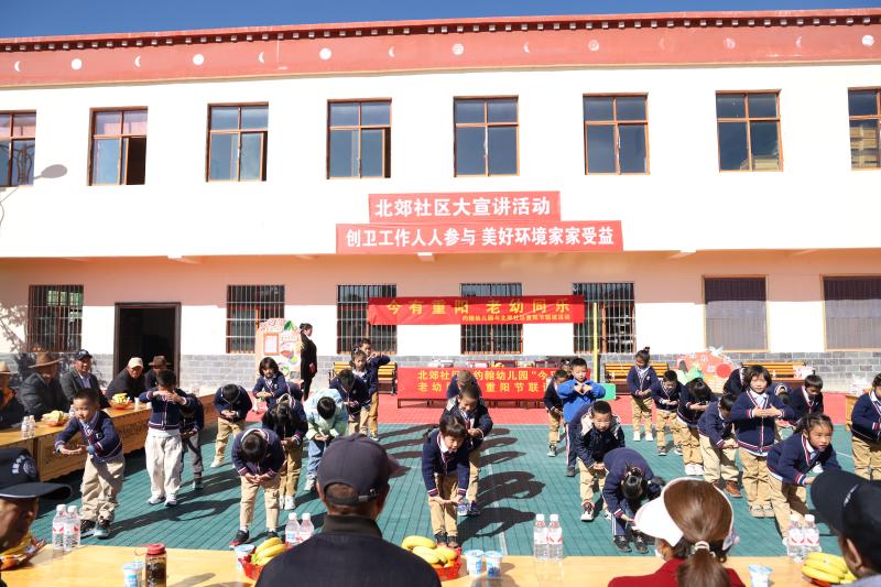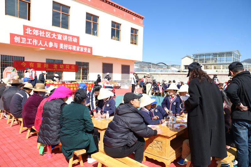 10月23日,香格里拉市建塘鎮(zhèn)北郊社區(qū)與約翰幼兒園開展以“今又重陽 老幼同樂”為主題的重陽節(jié)活動(dòng)。
