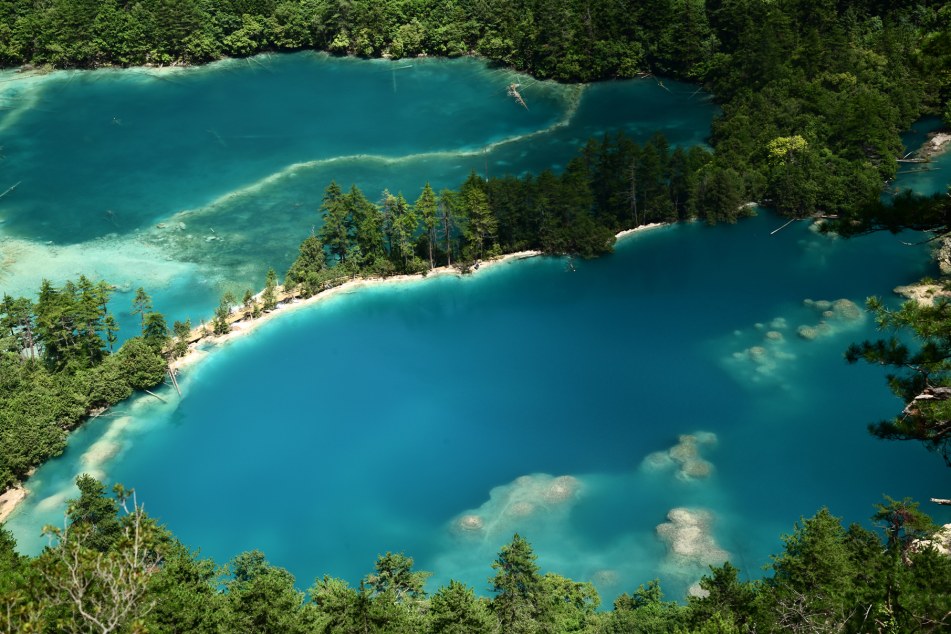 今的火花海,其修復(fù)方案得到聯(lián)合國教科文組織肯定支持,榮獲四川省“科技進(jìn)步一等獎”。圖據(jù)九寨溝管理局