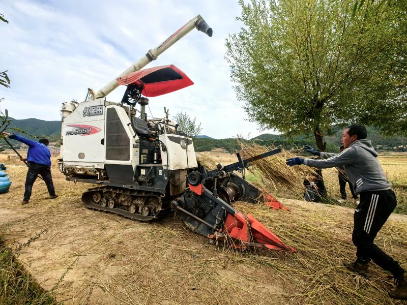 眼下,正是稻谷成熟收獲的時候。在維西縣攀天閣鄉(xiāng)安一村的稻田里,一穗穗黑谷將土地染得一片金黃,豐收的喜悅撲面而來。人與機器齊上陣,現(xiàn)場呈現(xiàn)一派繁忙熱鬧的景象。