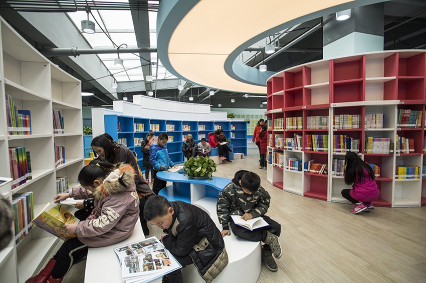 圖為學生和家長在圖書館閱讀書籍。