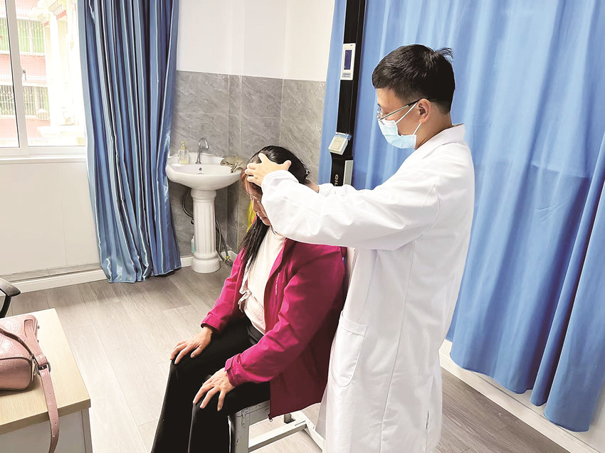 徐英俊通過檢查發(fā)現(xiàn)夫妻倆都患有較嚴重的退化性膝關(guān)節(jié)炎、關(guān)節(jié)腔積液、內(nèi)外側(cè)韌帶受損等疾病。經(jīng)過慎重考慮,徐英俊決定為其進行中西醫(yī)結(jié)合治療,并為他們制定了一套詳細全面的治療方案。超聲引導(dǎo)下關(guān)節(jié)穿刺、超聲引導(dǎo)下隱神經(jīng)阻滯、頰針療法、針刺療法……徐英俊因地制宜開展了多項新技術(shù)、新項目,效果立竿見影。