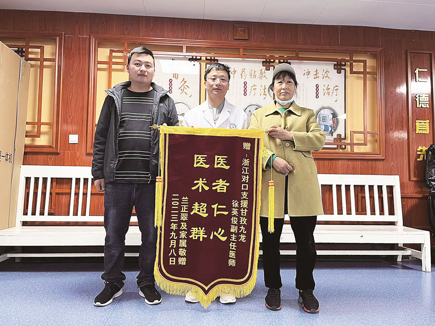 “除病痛醫(yī)術(shù)高超,保健康醫(yī)德高尚”“醫(yī)德高尚、醫(yī)術(shù)精湛”“善良的品德、精湛的醫(yī)技”……2023年2月,浙江省余杭區(qū)第二人民醫(yī)院麻醉醫(yī)生徐英俊赴九龍縣人民醫(yī)院,在海拔3000米的高原上開展醫(yī)療幫扶工作。短短幾個月,徐英俊的辦公室里不僅掛滿了患者送來的錦旗,他也成了甘孜群眾口中的“浙江專家”。