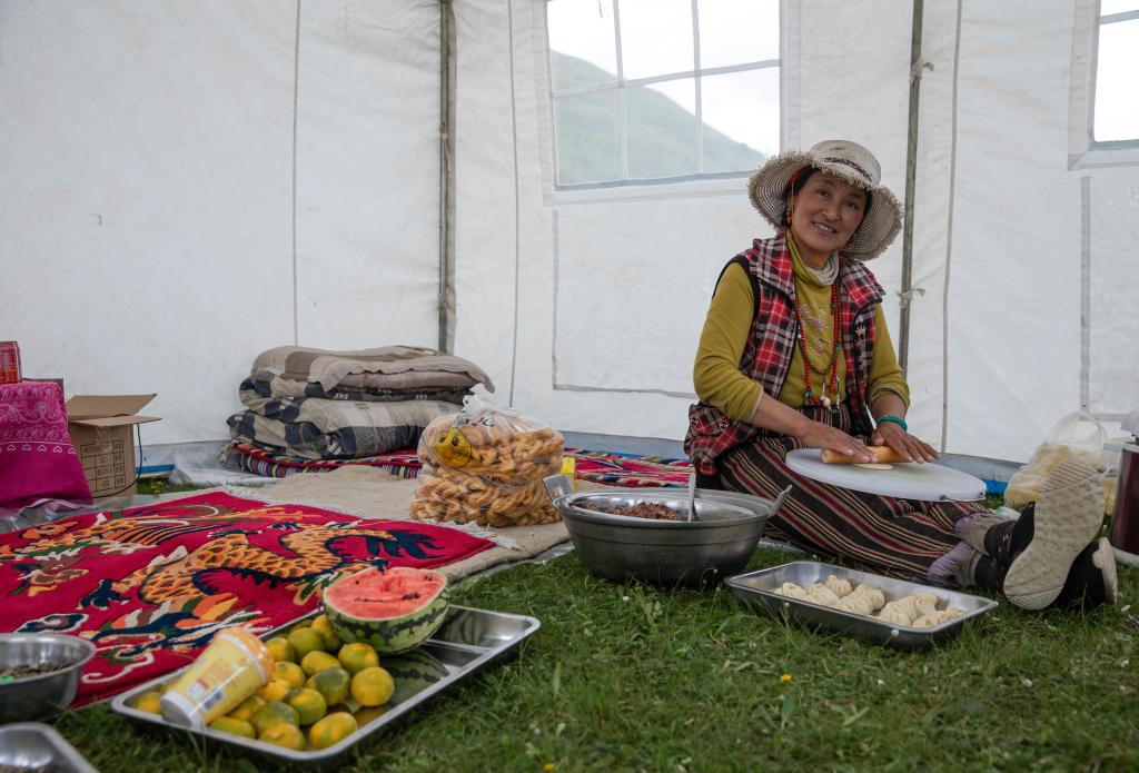 2021年7月25日,道孚縣牧民在帳篷里做包子。新華社記者 劉夢琪 攝