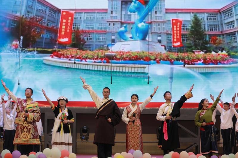 活動中,受邀領導嘉賓、廣大師生共同觀看了州民中40年發(fā)展歷程紀實片《四十芳華桃李情》、民族團結(jié)專題片《團結(jié)花開香溢雪域》。州民中師生及校友、州歌舞團演員等還為大家?guī)砹司实母栉璞硌?,表達了內(nèi)心的喜悅,為學校送上祝福。