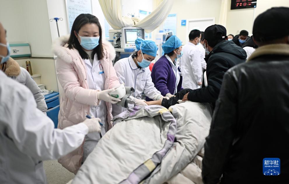 12月19日,一名地震傷員在青海省海東市民和回族土族自治縣人民醫(yī)院接受救治。記者從青海省委宣傳部和青海省應(yīng)急管理廳等部門(mén)獲悉,甘肅積石山6.2級(jí)地震波及鄰省青海,截至19日凌晨4時(shí),已造成青海省海東市9人遇難,124人受傷。新華社記者 張宏祥 攝