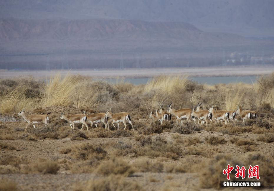 高原初春,青海省海西蒙古族藏族自治州烏蘭縣都蘭湖國家濕地公園蒼茫壯闊,成群的鵝喉羚在草地上奔跑、覓食,無比愜意。[詳細] -