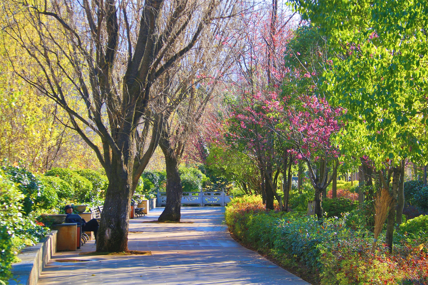 數九寒天,香格里拉產業(yè)園區(qū)卻是一幅暖冬畫面,陽光和煦,綠樹成蔭,沿江步道兩側的一樹樹冬櫻開滿粉紅的櫻花,蜜蜂穿梭期間,讓人仿佛置身春日。