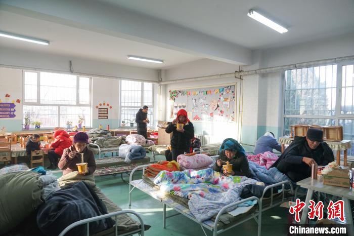 資料圖為在青海省海東市民和縣中川鄉(xiāng)美一小學的震區(qū)集中安置點內(nèi),受災民眾正在吃早餐。馬銘言攝