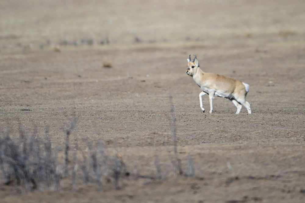 這是1月24日在青海省海北藏族自治州剛察縣哈爾蓋鎮(zhèn)境內(nèi)的草原上拍攝的普氏原羚。新華社記者 耿輝凰 攝