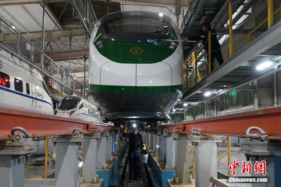 21時(shí)40分,動(dòng)車組上所有電務(wù)設(shè)備都檢查完畢,整個(gè)過程中,他們從車頭到車尾至少走了3個(gè)來回。春運(yùn)期間,他們每晚要全面檢查試驗(yàn)5列動(dòng)車組,一個(gè)晚上要步行大約9公里。