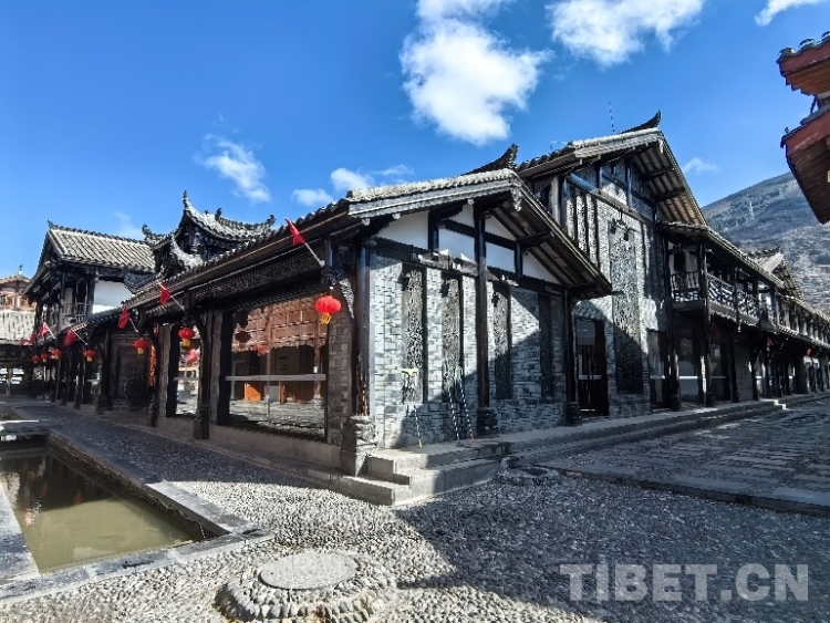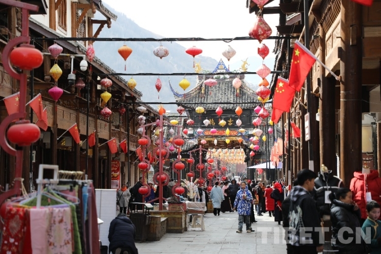 今年春節(jié),身著藏族、回族等民族服飾的本地居民漫步穿梭在古城內(nèi),他們或在三五成群的聊天逗笑,或在道路兩邊的商鋪小攤購買挑選,或在熱情洋溢地排練元宵歌舞。古城的街道寬闊,鋪就的石板路光滑平整,每條街道整片掛滿了帶有新春氣息的古樸燈籠。