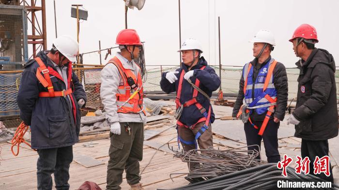 圖為技術人員指導封頂工作。韓奎忠 攝