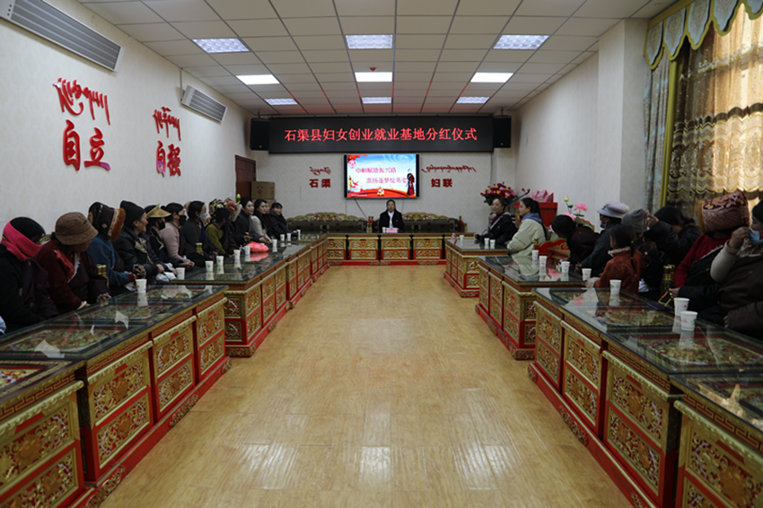 石渠婦女創(chuàng)業(yè)就業(yè)基地為30戶婦女分紅