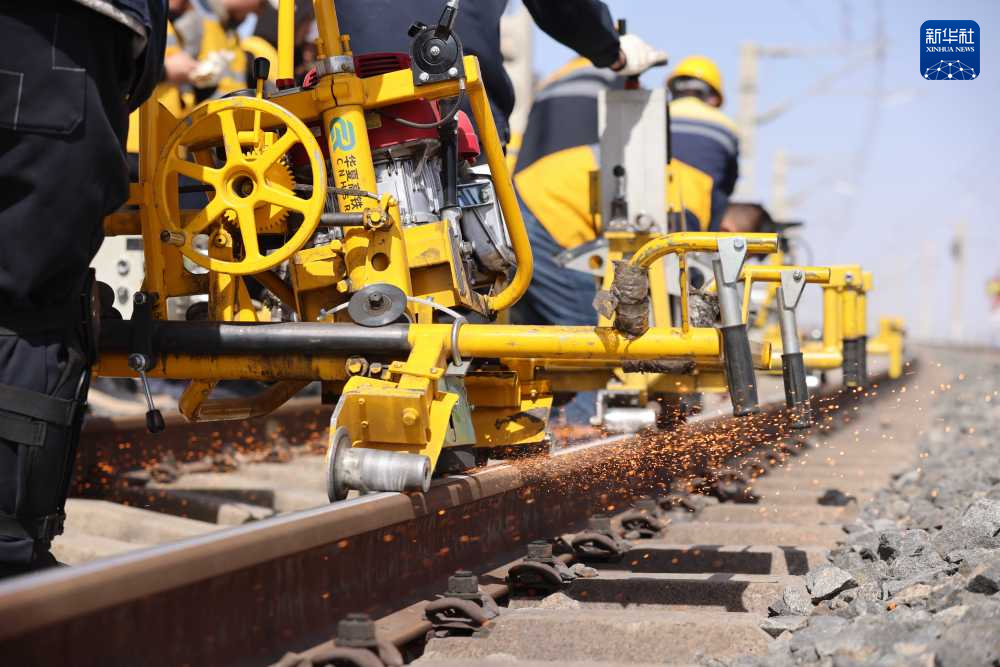 進入4月,昆侖山上仍被白雪覆蓋。1日一早,在昆侖山腳下的格庫鐵路格爾木至格爾木南上行聯(lián)絡線區(qū)間防護欄外,中國鐵路青藏集團有限公司格爾木工務段重點維修車間的8名職工正仔細地檢查裝備,為稍后的鋼軌“拋光”作業(yè)做好準備。