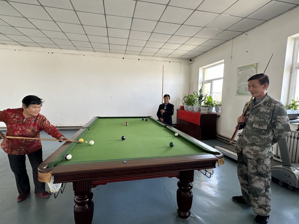 “在這兒吃住免費(fèi),飯有人做,衣服有人洗,每月還有100多元的養(yǎng)老金和零花錢(qián)?!痹诨顒?dòng)室里,王金蓮手握臺(tái)球桿,熟練推桿。入住敬老院后,運(yùn)動(dòng)成了她的生活日常。