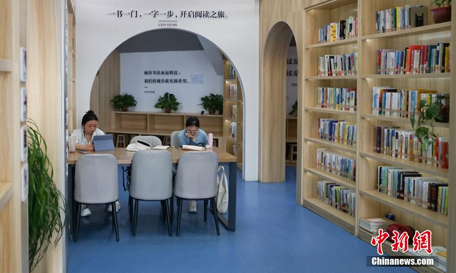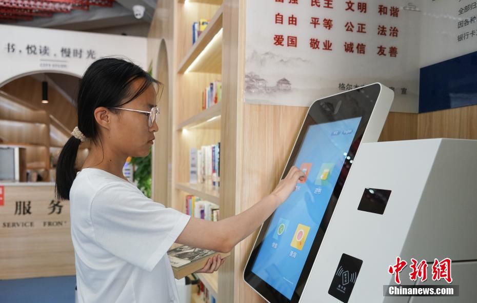 6月19日,市民在青海省海西蒙古族藏族自治州格爾木市一城市書(shū)房?jī)?nèi)借閱書(shū)籍。中新社記者 馬銘言 攝