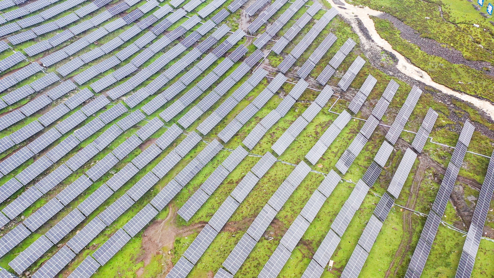 來到這塊“試驗地”,記者發(fā)現(xiàn),光伏板每行間隔約3米,用支架高高架起,下面一個成年人可輕松站立。站在光伏板下,腳邊的青草依然能見光、透氣,翠綠的青草長勢良好,其“個頭”比直接暴露在陽光下的草高出兩三厘米,也更茂密。“金川地處高原,晝夜溫差大,但因為有光伏板的遮擋庇護,使得板下的土壤溫度能保持相對穩(wěn)定,減少了水份蒸發(fā),且能減少烈日大風的侵襲,草自然也就長得好些。”四川華電金川水電開發(fā)有限公司總經(jīng)理陰友權揭開謎底。