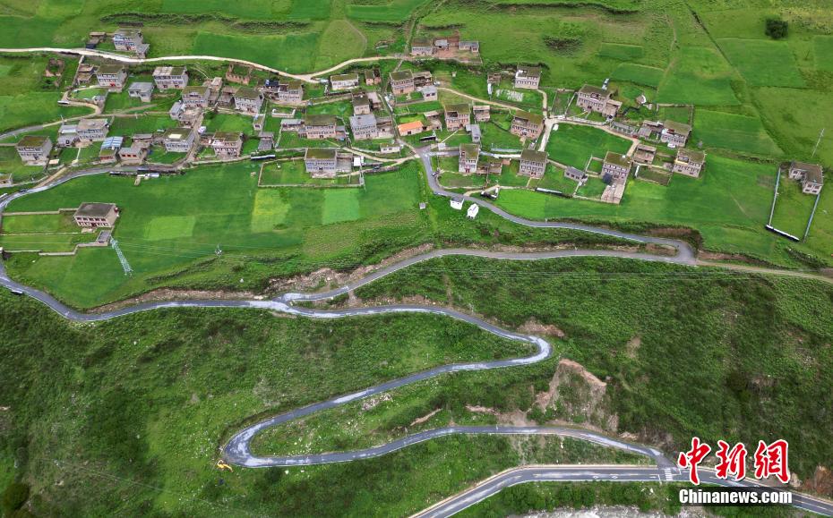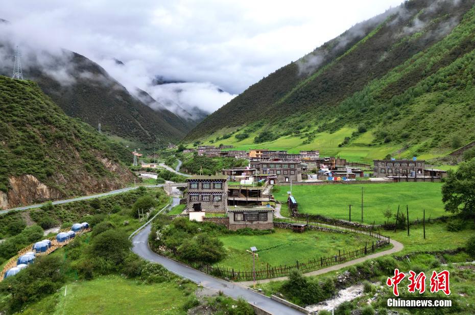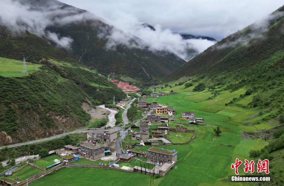 圖為6月27日,航拍措普溝景區(qū)內(nèi)的達(dá)塔村。(無(wú)人機(jī)照片)中新社記者 王磊 攝