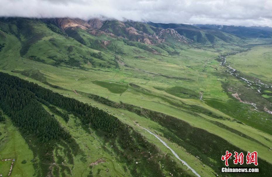 圖為6月27日,航拍措普溝景區(qū)風(fēng)光。(無(wú)人機(jī)照片)中新社記者 王磊 攝