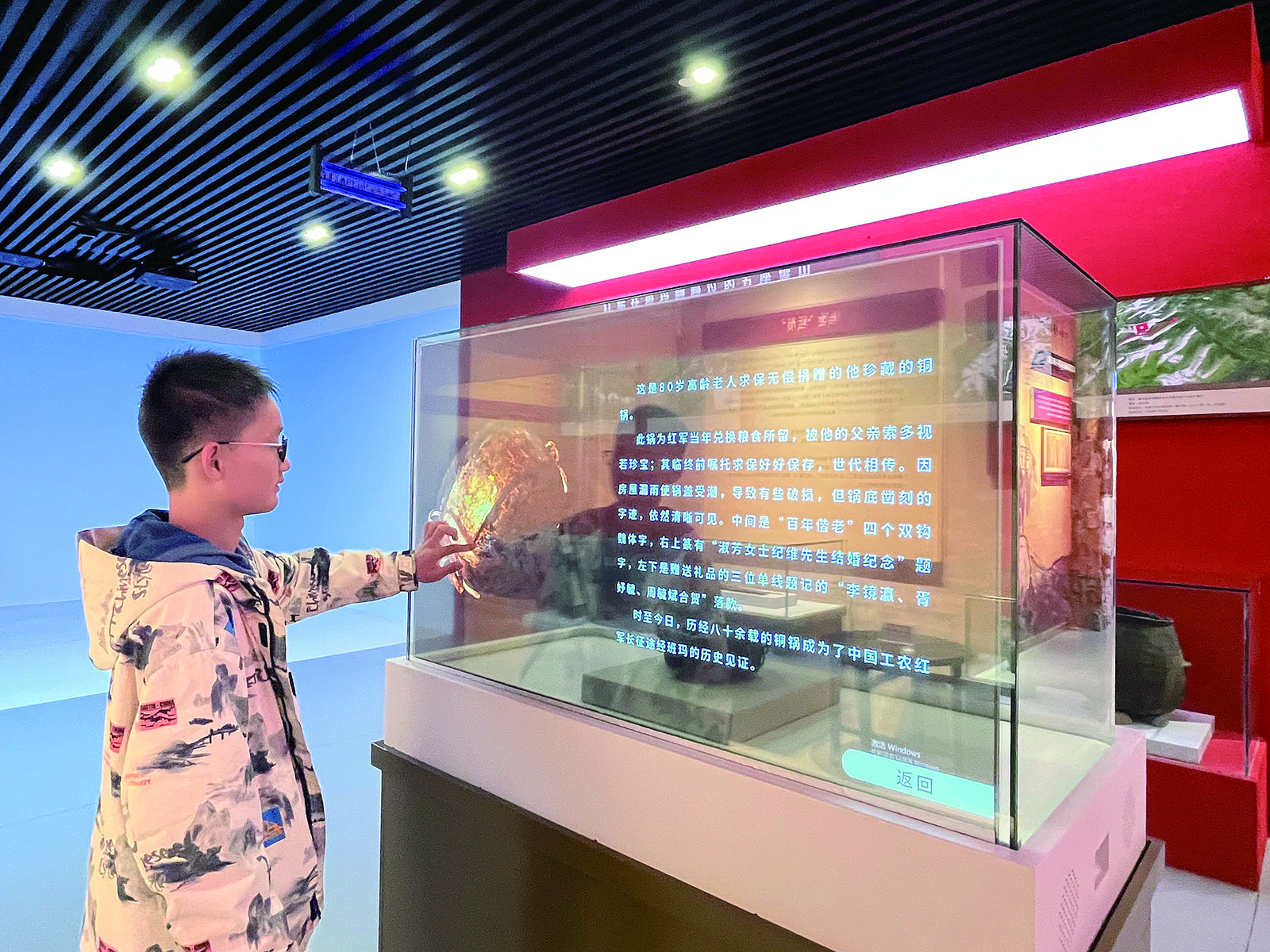 游客正在紅軍溝紀(jì)念館內(nèi)觀看文物介紹。