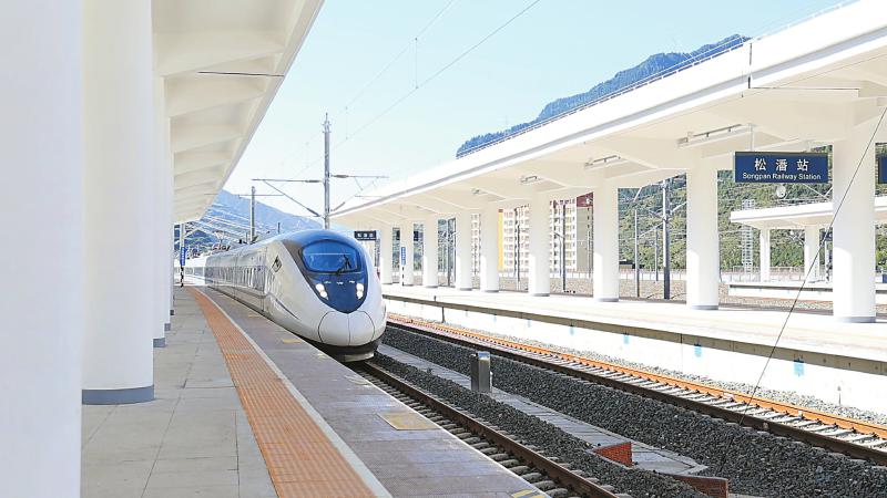 運(yùn)行試驗(yàn)車駛進(jìn)松潘站。中國(guó)鐵路成都局集團(tuán)公司供圖