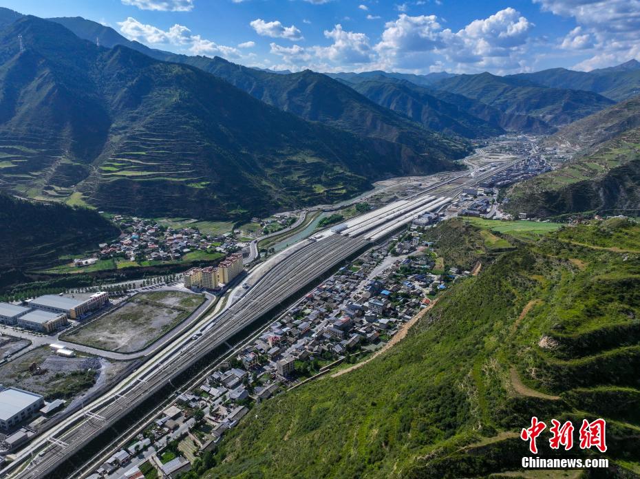 圖為川青鐵路鎮(zhèn)江關(guān)站全景。(無人機照片)中新社記者 劉忠俊 攝